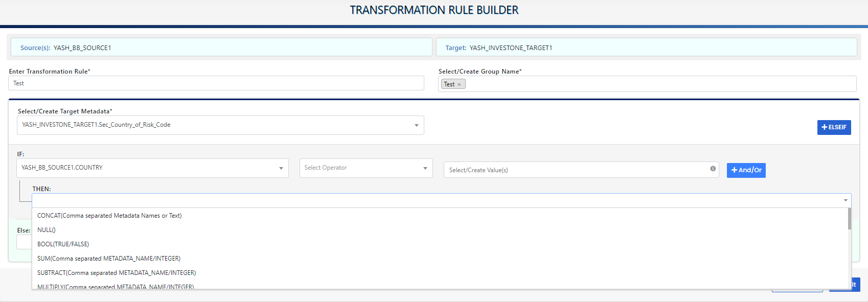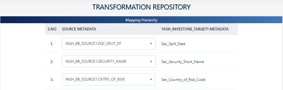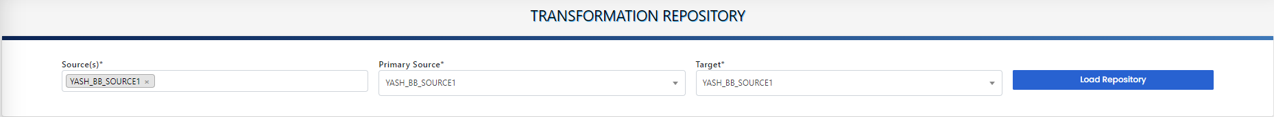 The Transformation Repository page is a dedicated interface where users can set up transformation rules for a pair of source and target datasets. Users start by selecting the primary data source and the target dataset. They then proceed to define rules for the desired data attributes, ensuring that the data is transformed correctly to meet business needs. This setup allows for precise control over the data transformation process, facilitating accurate and efficient data analysis and reporting.
